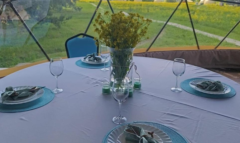 - Глэмпинг расположен в живописном месте, всего в 25 километрах от Ярославля, на «полуострове», окружённом вековыми соснами